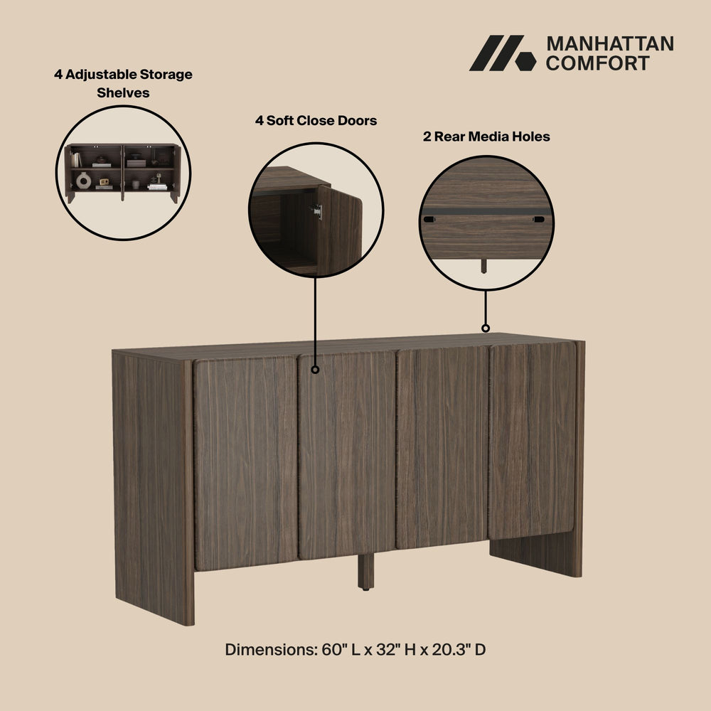 Linda - Sideboard - Walnut Brown 60.0"W x 20.3"D x 32.0"H - 106.0 lb