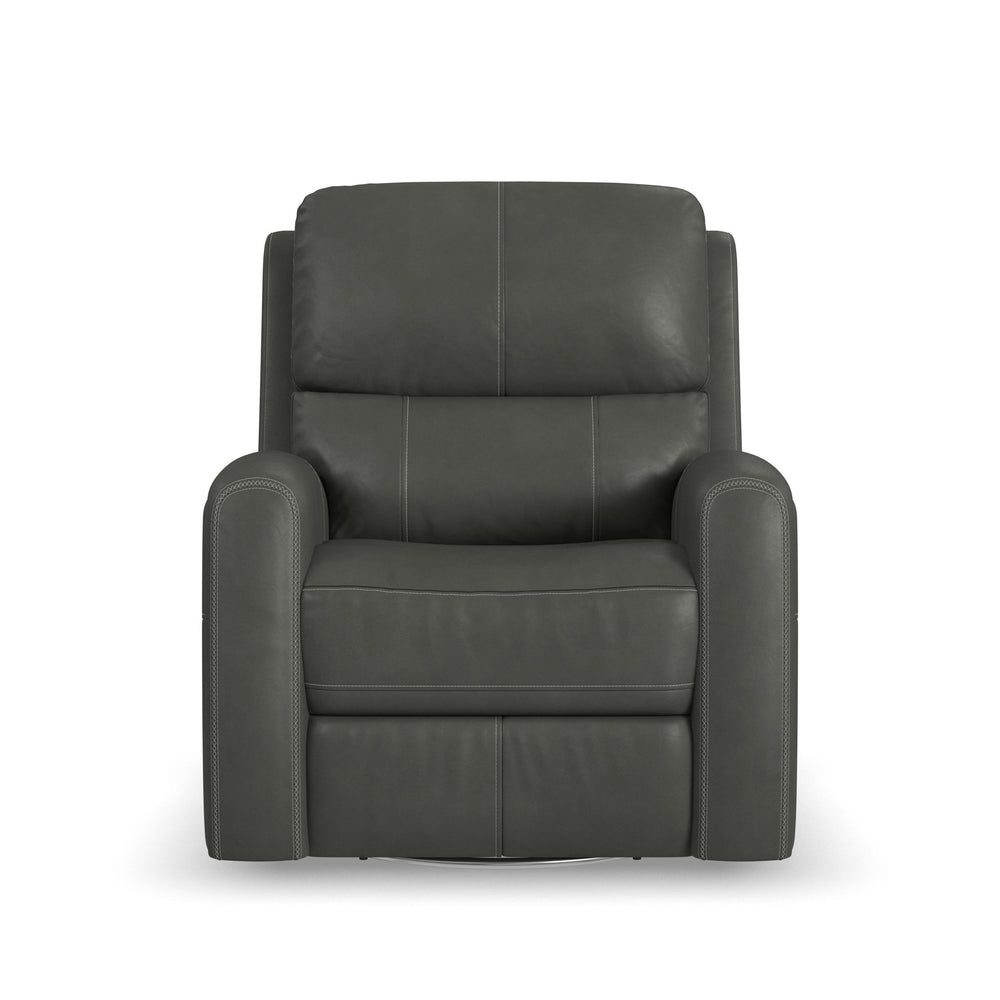 Enjoy the ultimate in ergonomics with the Linden power swivel gliding recliner with power headrest, lumbar, heat, and massage. The plush, divided back cushion supports the back while the padded track arms showcase an eye-catching cross-stitch detail. Independently adjust the recline, headrest and lumbar for a customized sit. This recliner effortlessly swivels and glides for versatile comfort, while adjustable heat and air massage features in the seat and backrest provide elevated wellness. And with Flexsteel’s Blue Steel Spring™ at the heart of the seat, the Linden swivel glider recliner is designed to last.