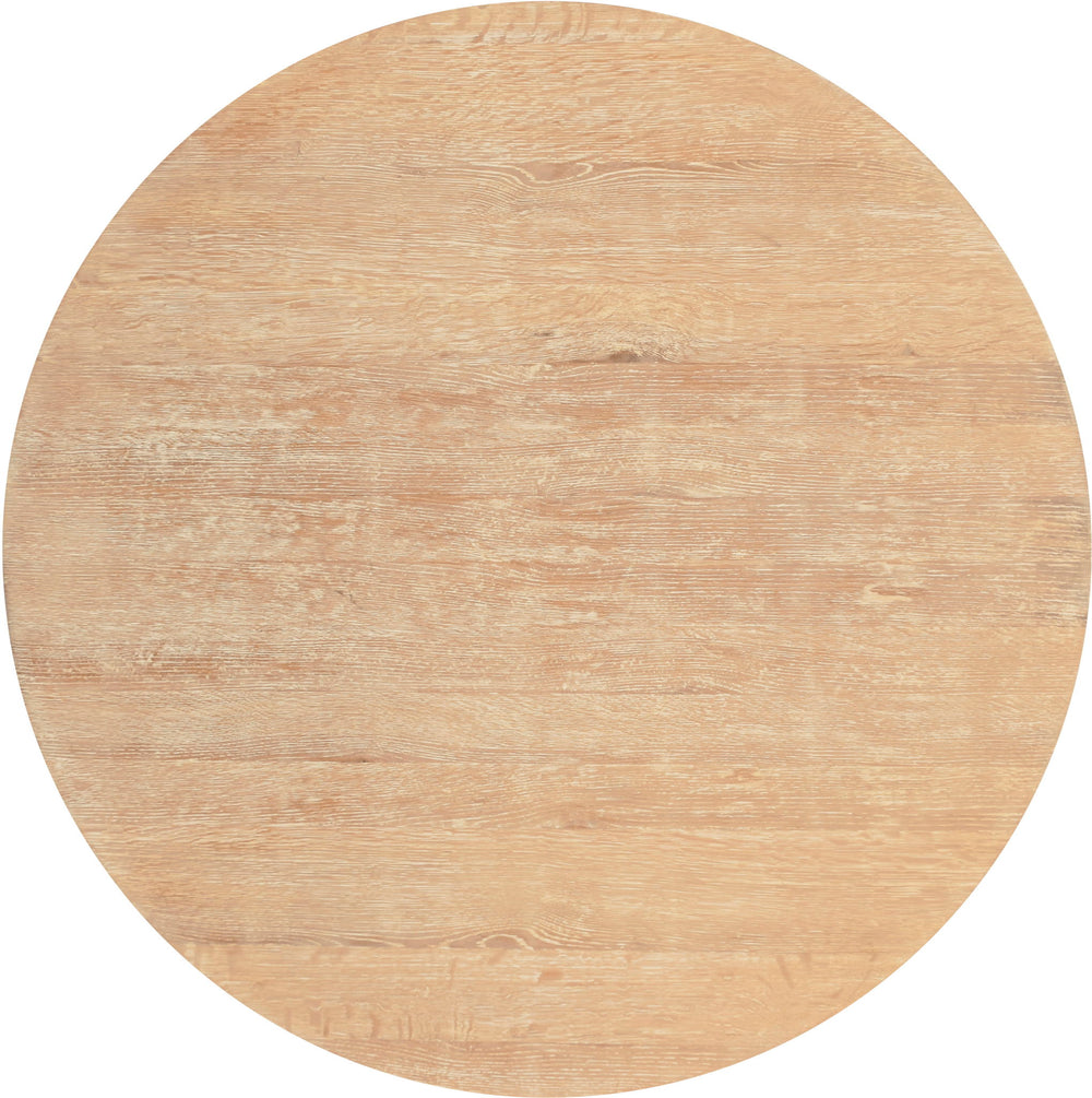 Give your home a rustic look with this Linette white oak dining table. Crafted from solid white oak wood, this table is sturdy enough to serve your dining area for years to come. A cerused brushed white oak finish gives the table a natural look perfect for any down-home living space. Its tapered base provides an elegant and sturdy foundation for its round tabletop, ensuring there is lots of leg space underneath the table.