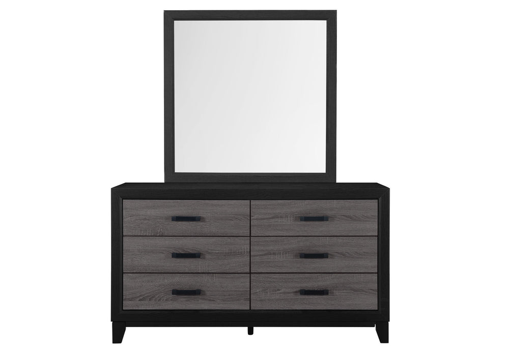 With its urban farmhouse design, the best of farmhouse and urban living combine to create an upscaled farmhouse appearance. The case pieces are black with rustic grey wood inlay. In addition to the two-tone design, the metal hardware completes the mixed media look and adds a modern flair.
