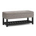 Hand constructed using solid wood, plywood, foam Features lift up lid with child safety hinge to prevent...