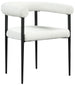 Bring home this Louie boucle fabric dining chair to add a touch of modern fun and sophistication to your space. This dining chair is the perfect addition to your up-to-the-minute dining area, with its curved back and eye-grabbing overall aesthetic. Rich boucle fabric covers the seat and back, giving it a luxe look. An all-metal frame adds sturdy stability and resilient durability, ensuring lasting use in your home.