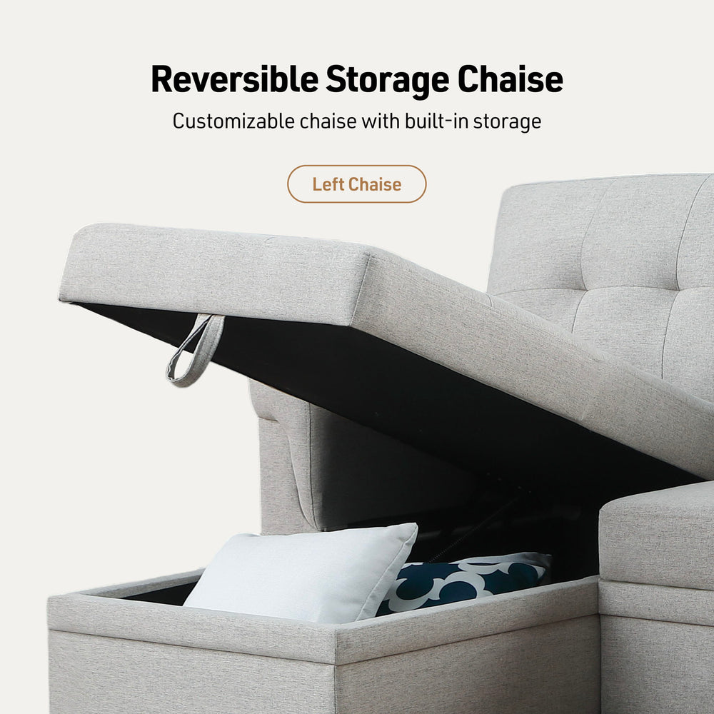 Lucca - Linen Reversible Sleeper Sectional Sofa With Storage Chaise - Light Gray 54.0"W x 84.0"D x 35.0"H - 209.0 lb