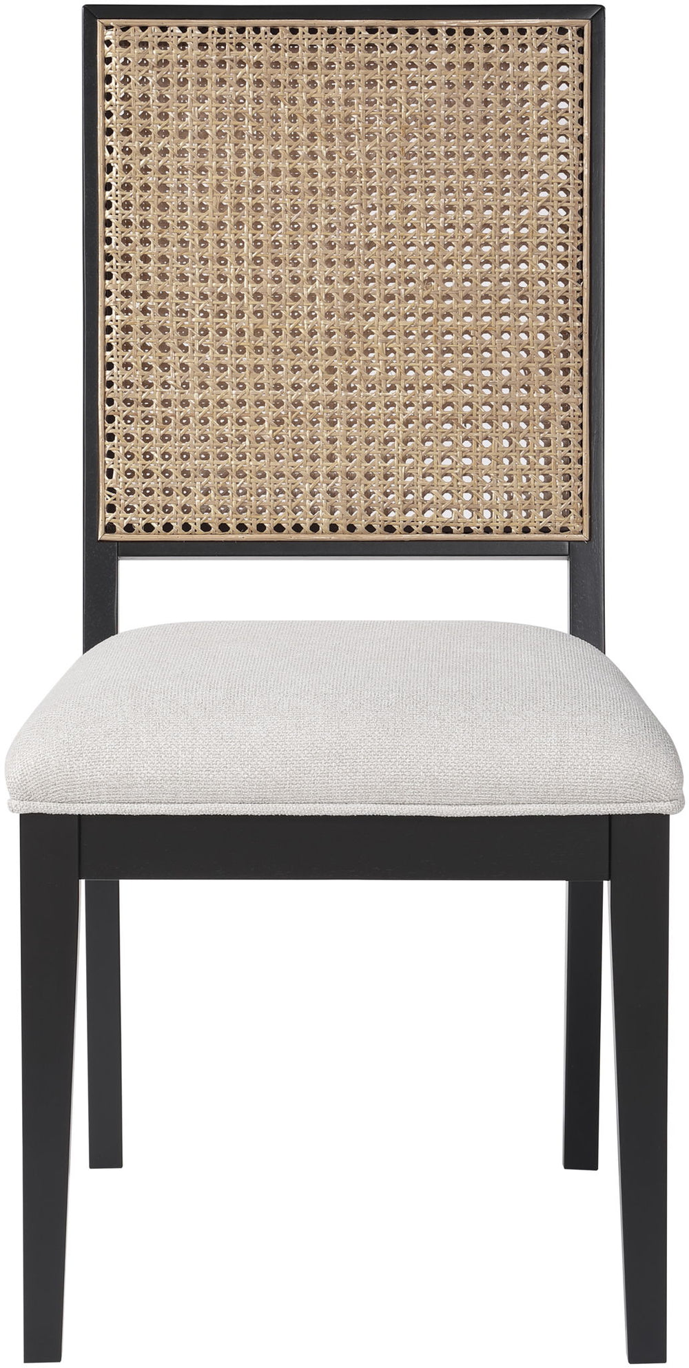 Give your dining space a traditional makeover with this Butterfly dining chair from Meridian Furniture. Its solid rubber wood frame features a sleek black finish, and its cushion is upholstered in soft cream linen-like polyester fabric, providing comfort and complementary colors to your dining table. Its natural cane back is reminiscent of a mid-century design, so you can relax in style as you dine, and making this piece right at home in any living space.
