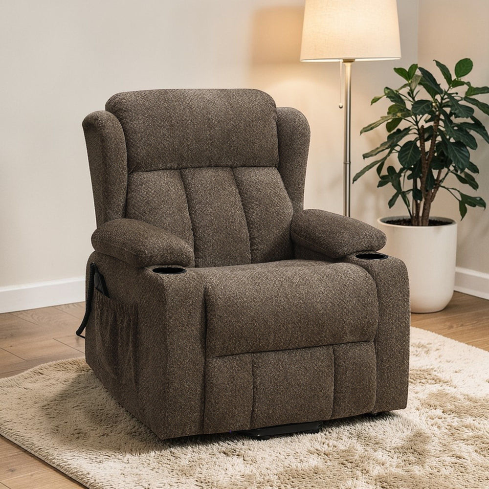 Lusio - Power Motion Recliner With Lift & Cup Holder - Brown