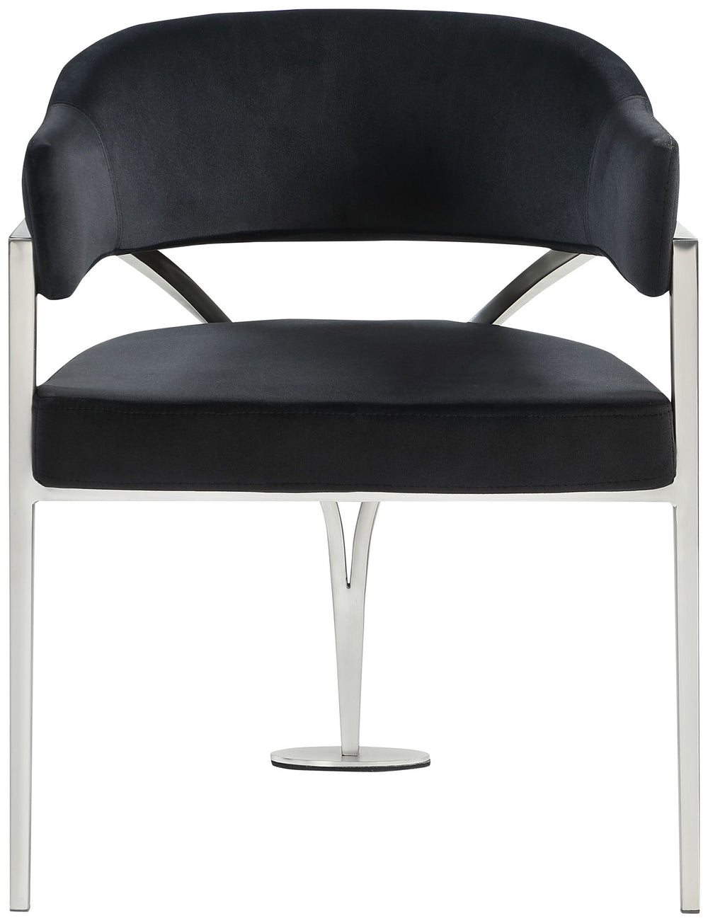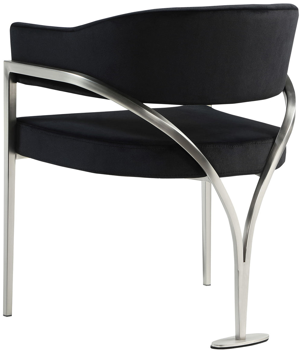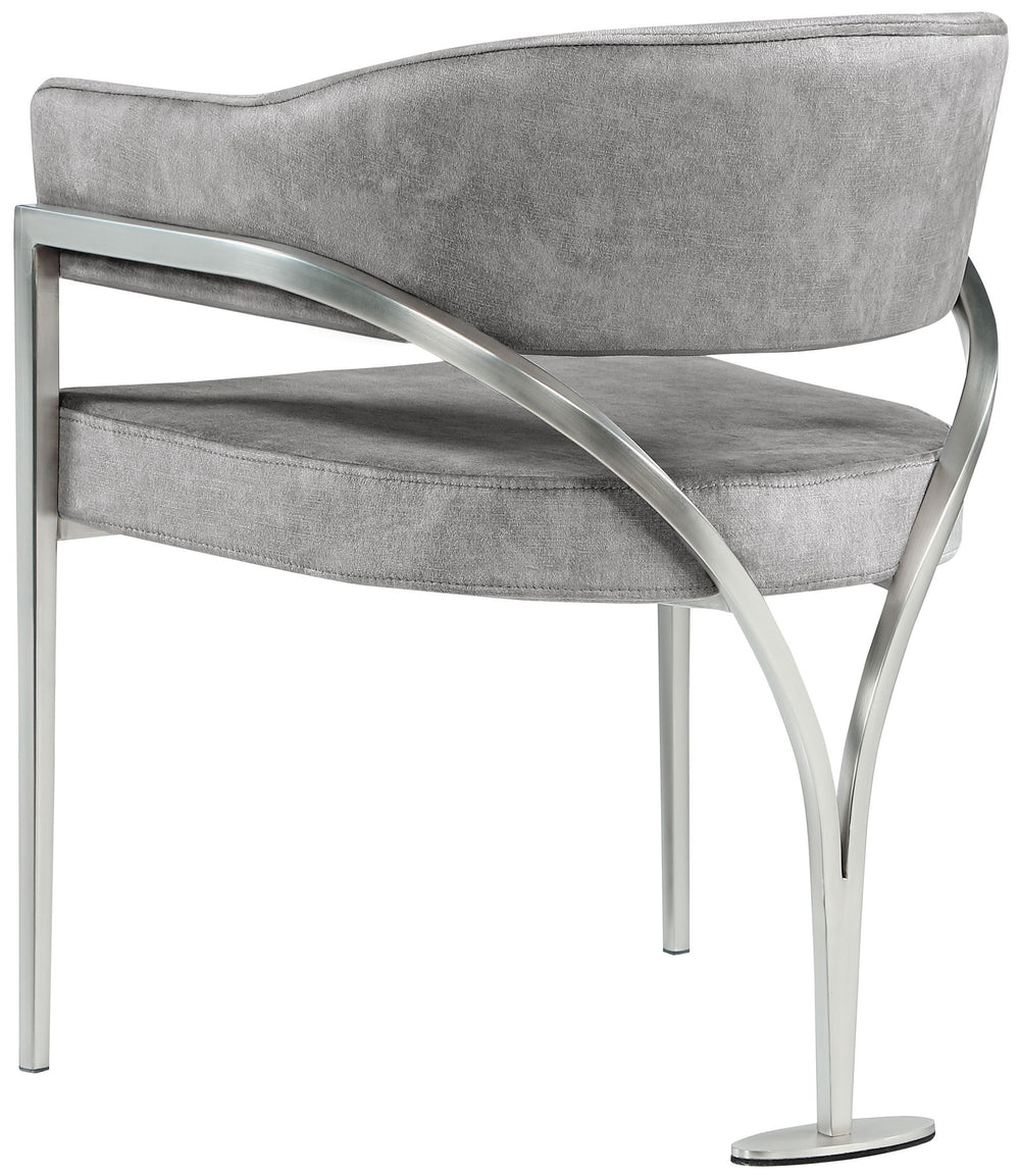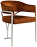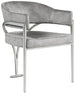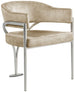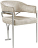 Give your dining area a show-stopping new look when you bring home one or more of these Madelyn velvet dining chairs. The Madelyn chair is all about comfort and style with its barrel-back design and its sophisticated lines. Upholstered in luxurious biege velvet that's inviting to the skin and super soft to the touch, this chair features an iron metal frame for durability and lasting use in your busy home. The brushed chrome finish adds a final modish touch to this lovely dining chair.