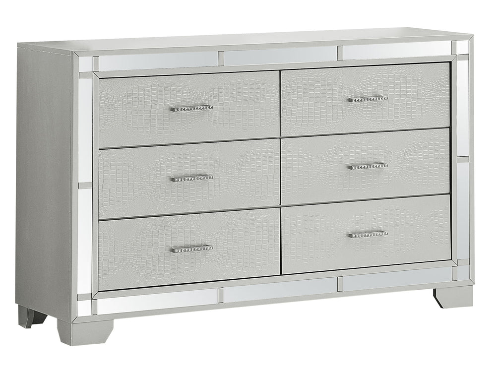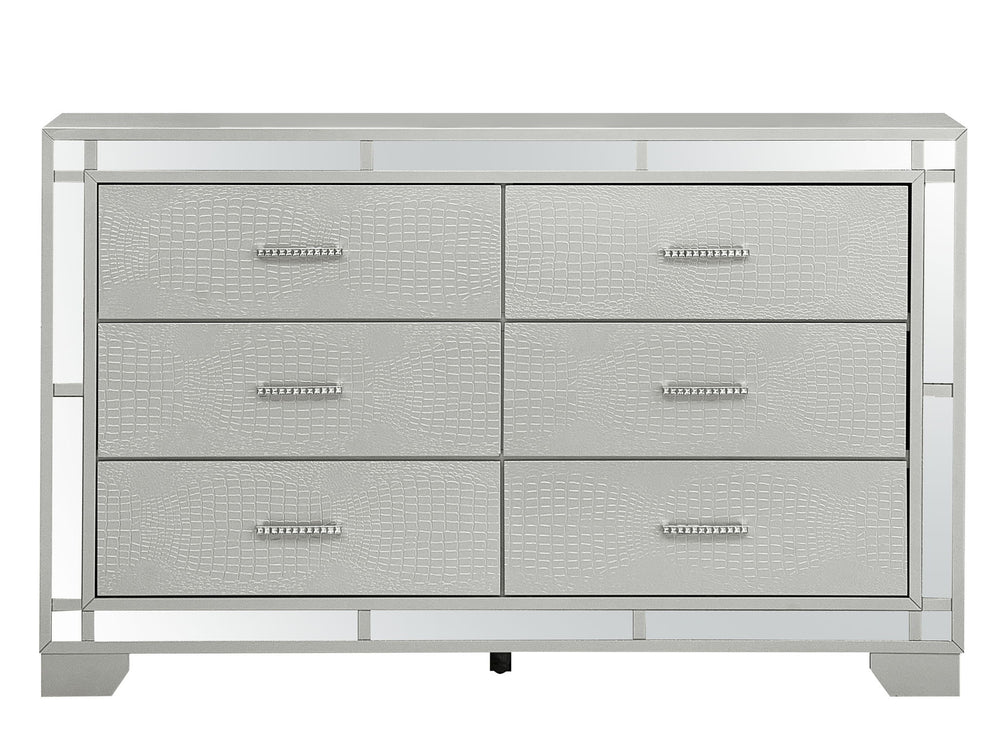 Unique Croc Textured Finish: Embossed in real wood on dovetailed drawers for a luxurious look. Mirror Accents:...