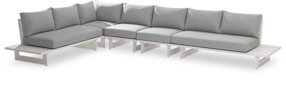 Maldives - 5 Piece Water Resistant Outdoor Patio Modular Right Arm Facing Sectional With White Base - Gray 157.0"W x 102.0"D x 33.0"H - 322.0 lb