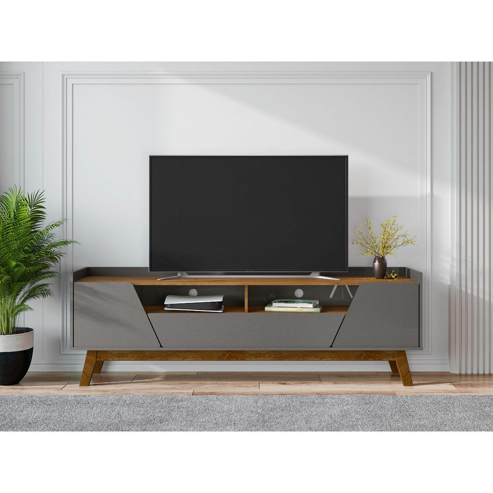 Marcus - 71" TV Stand With 4 Shelves And Soft Close Doors - Dark Gray 70.86"W x 14.17"D x 23.42"H - 76.43 lb