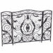 Mariella - Traditional Floral Iron Fireplace Screen With Ornate Design - Black / Brushed Silver 53.5"W x 2.0"D x 36.5"H - 20.61 lb