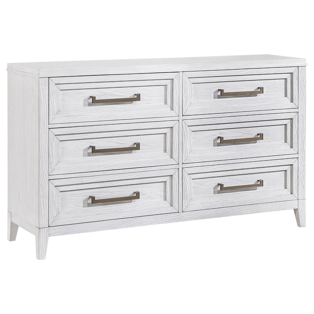 Marielle - 6-Drawer Bedroom Dresser - Distressed White 64.0"W x 19.0"D x 37.75"H - 205.02 lb