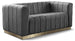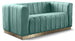 Seat guests in the epitome of comfort and style with this Marlon velvet loveseat. This piece is just the thing to showcase your modish style while ensuring total enjoyment from all who are lucky enough to relax on its channel tufted seats. The soft velvet upholstery adds a beautiful touch to your space and feels great against your skin while the brushed gold stainless steel base lends it a contemporary finish.
