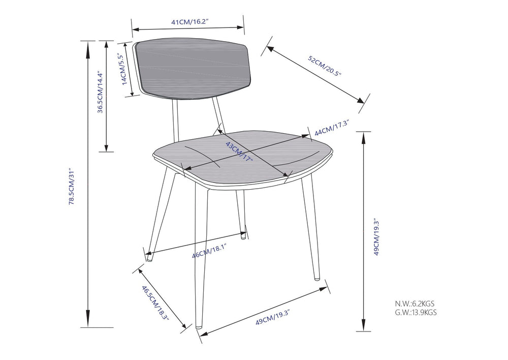 Set of 2 dining chairs upholstered, modern aesthetic and easy maintenance. Features a solid wood veneer backrest...