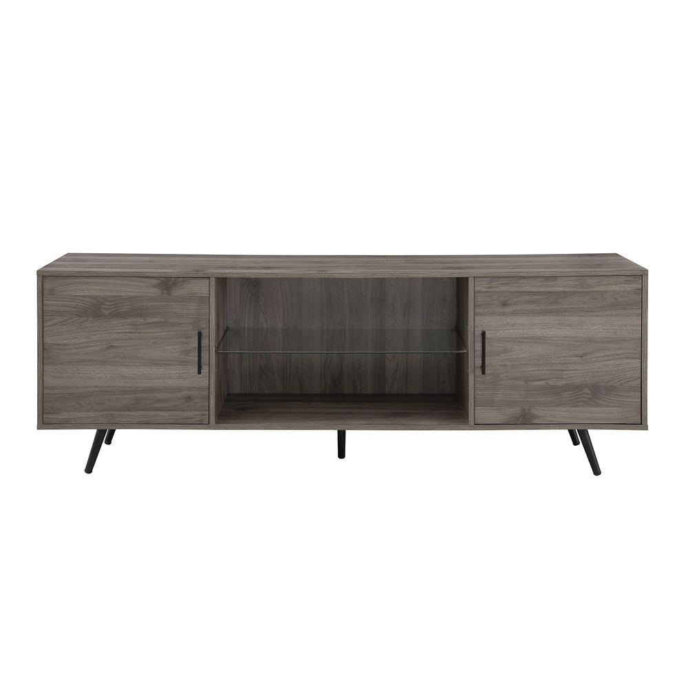 Mid-Century Modern 2 Door 70" TV Stand For 80" TVs With Glass Shelf - Slate Gray 70.0"W x 15.75"D x 24.0"H - 81.0 lb