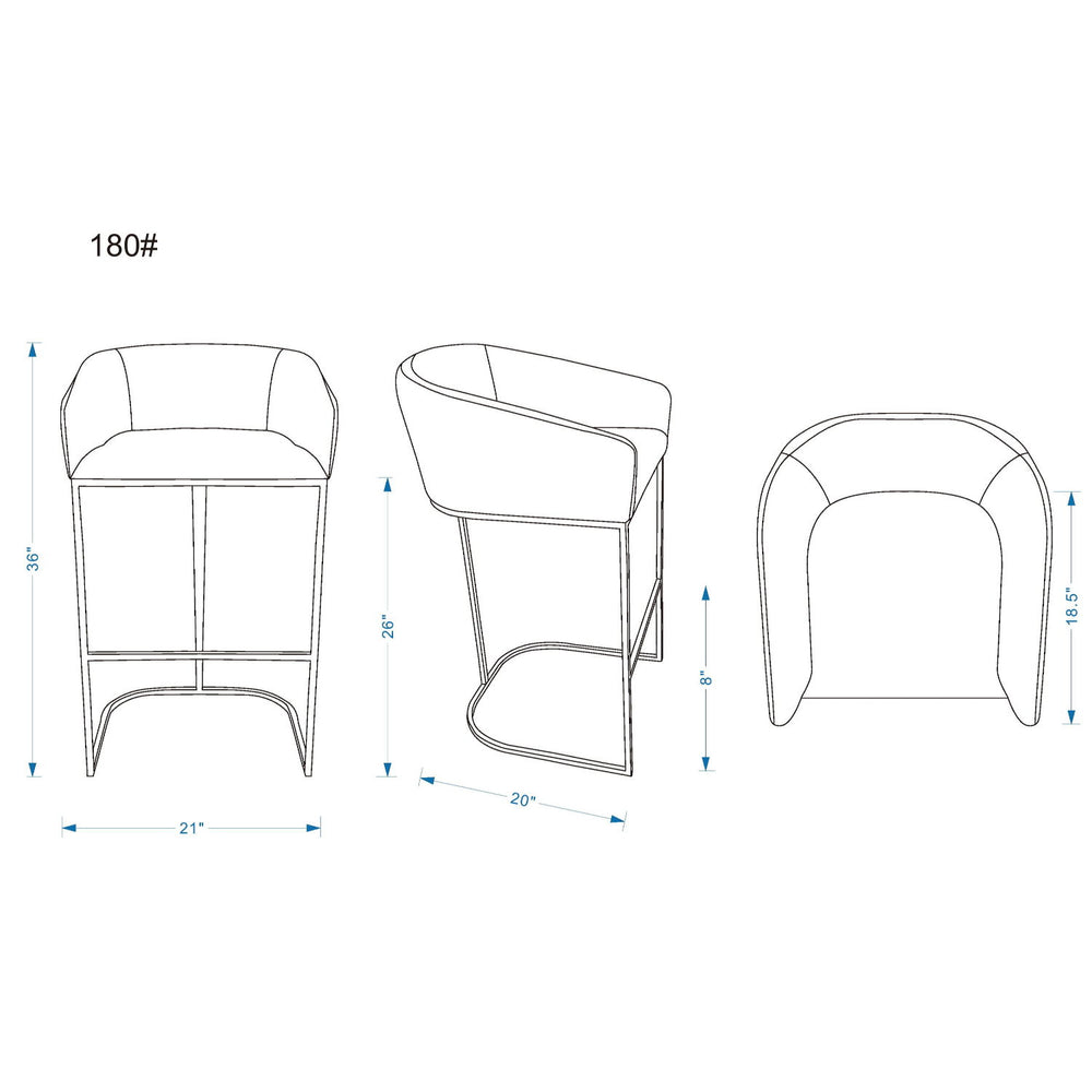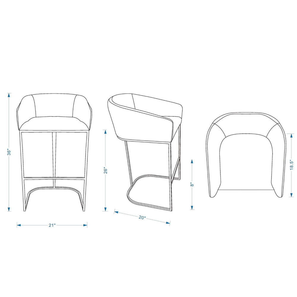 Upholstered Counter Stool With Backrest And Base - Gray 20.0"W x 21.0"D x 36.0"H - 15.2 lb