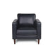 Refined architectural lines and a nod to the mid-century styling showcases this chair's uniquely simple yet sleek design. This small-scale chair offers a chic and current look by featuring a tufted seat cushion with stunning topstitching detail. The modern chair features narrow track arms and recessed turned legs adding modern simplicity with maximum seating capacity. The collection is expertly tailored and will become the centerpiece of your living room, den, urban loft, condo, or home office. Removable legs allow for simple delivery for tight spaces. All cushions are removable.