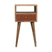 Mini Nightsand - This beautifully designed nightsand is constructed from 100% solid mango wood and has a rich finish. Useful storage space is available with a 1 drawer, 1 shelf and a decent sized table top to place any ornaments. Other features include a pull out drawer, and 4 Scandinavian styled legs to give it that Nordic/modern style which will suit most interiors.