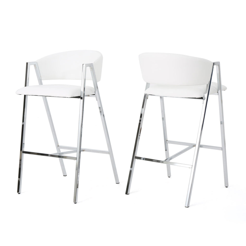 Modern Bar Stools With Low Back And Arms And Durable Metal Frame (Set of 2) - Ivory