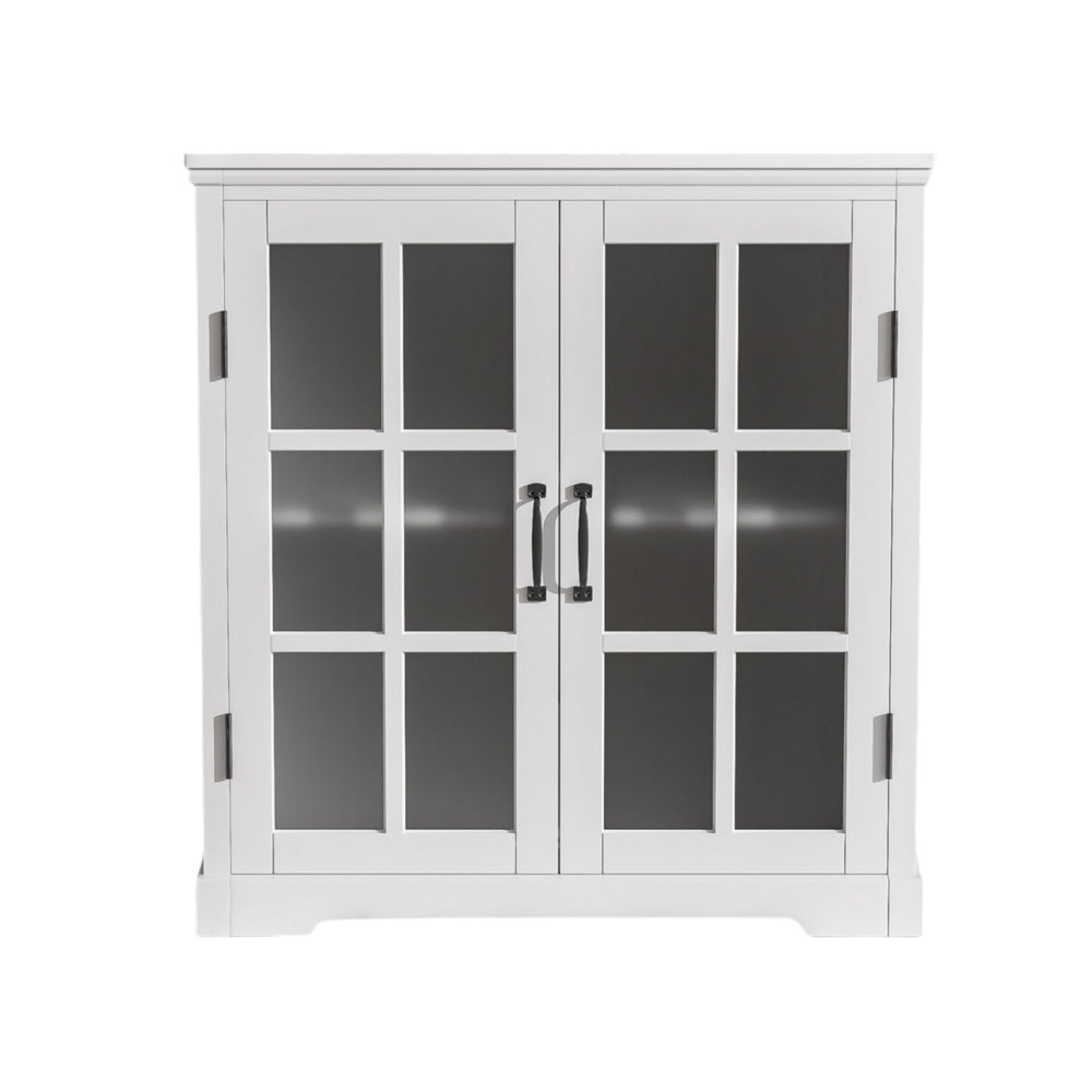 Bathroom Vanity With Sink, Tempered Blurred Glass Doors - White 30.0"W x 18.25"D x 34.0"H - 84.88 lb