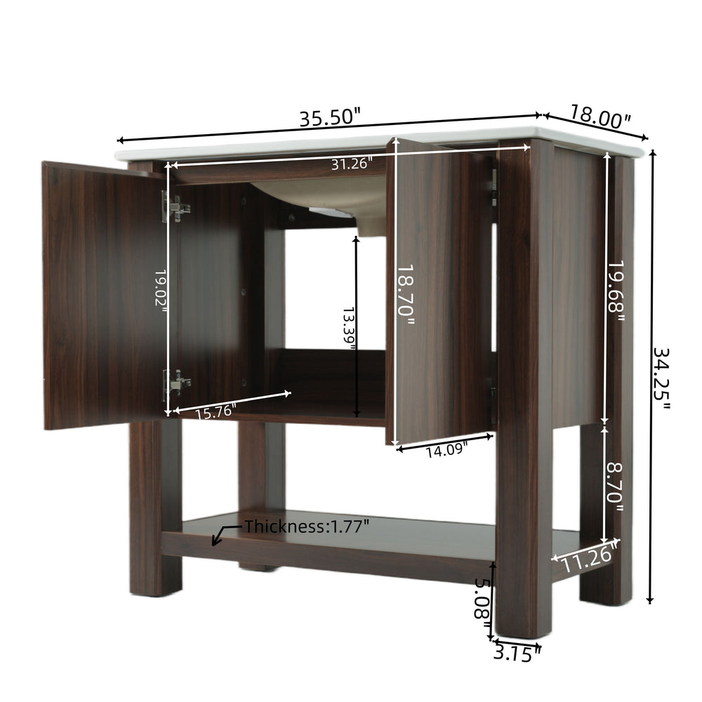 36" Modern Bathroom Vanity With Rectangle Ceramic Sink, Bathroom Cabinet And 45 Degrees Free Handle Design Soft Closing Doors, 1 Open Shelf At The Bottom - Dark Brown 35.5"W x 18.0"D x 34.25"H - 94.47 lb