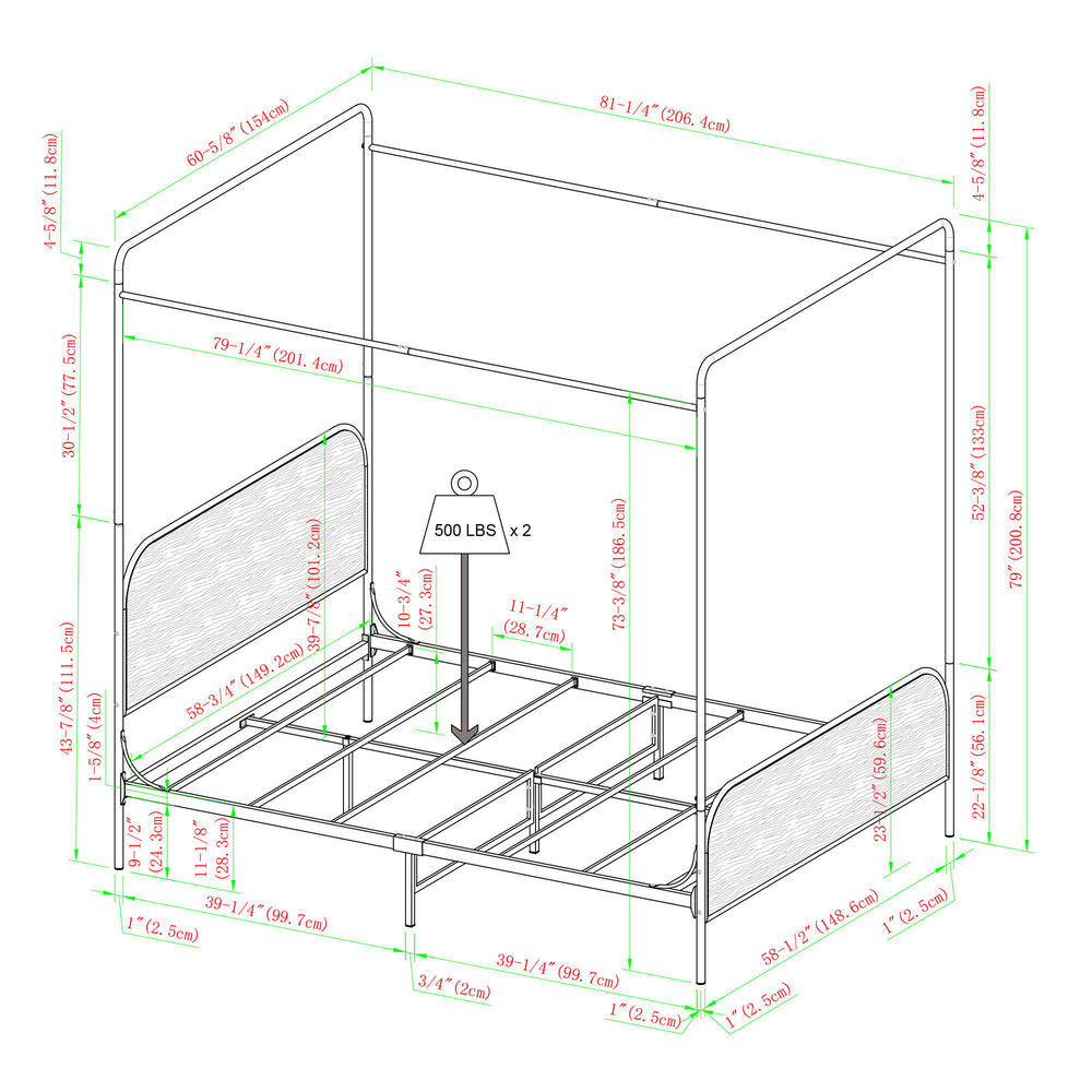 Modern Canopy Queen Bed Frame - Black 81.25"W x 15.63"D x 79.0"H - 84.0 lb