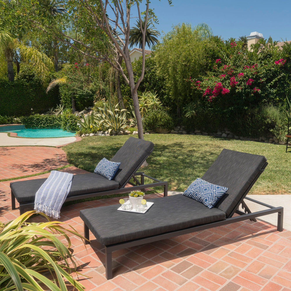Modern Aluminum Chaise Lounge With Water Resistant Fabric Cushions - Dark Gray 77.0"W x 27.0"D x 10.25"H - 28.22 lb