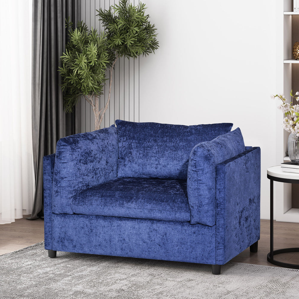 Modern Club Chair With Textured Upholstery And Pillow Accents - Navy Blue 51.0"W x 34.5"D x 33.75"H - 73.19 lb