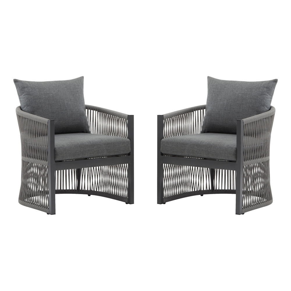 Modern Curved Aluminum Lounge Chair With Rope Weave Design And Cushioned Comfort (Set of 2) - Gray 24.0"W x 25.2"D x 27.95"H - 15.1 lb