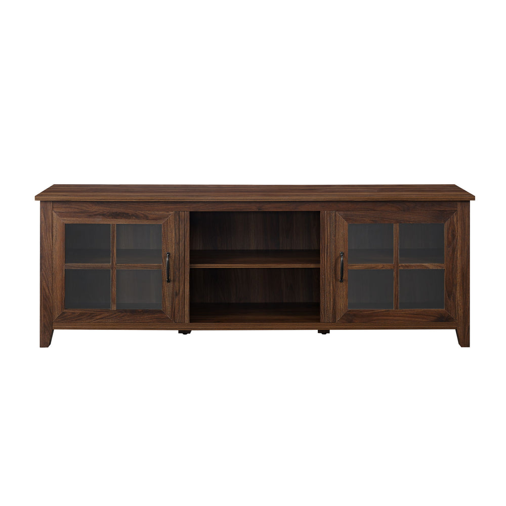 Modern Farmhouse 2 Door Glass Windowpane 70" TV Stand For 80" TVs - Dark Walnut 70.0"W x 16.0"D x 24.0"H - 91.0 lb