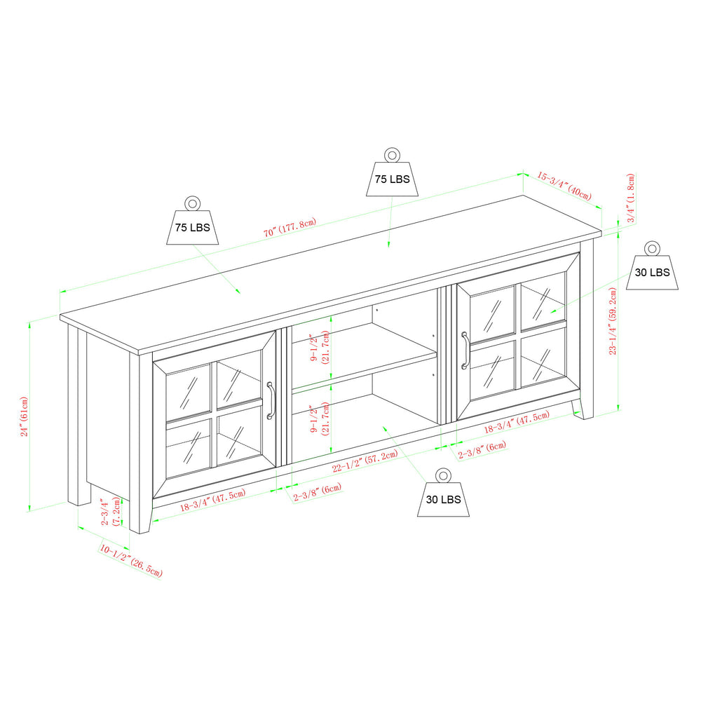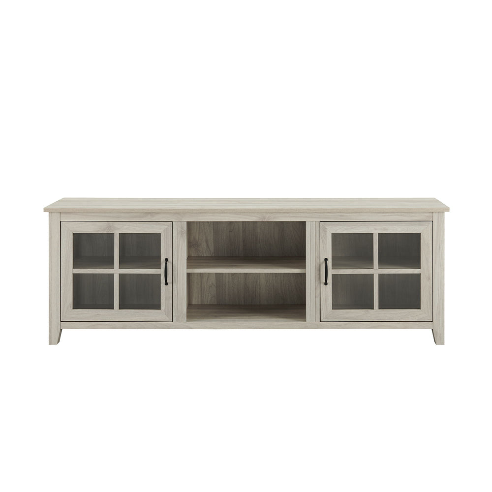 Modern Farmhouse 2 Door Glass Windowpane 70" TV Stand For 80" TVs - Birch 70.0"W x 16.0"D x 24.0"H - 91.0 lb
