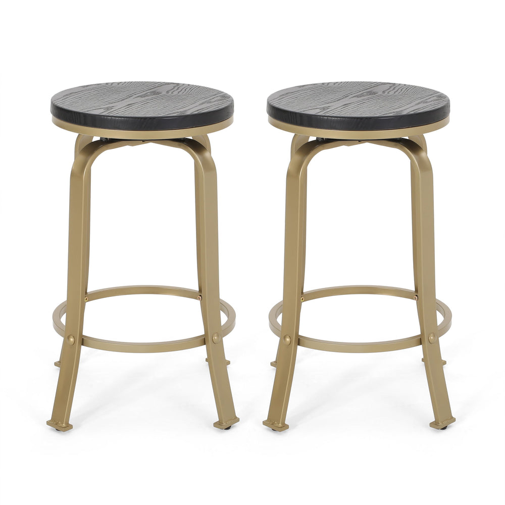 Modern Industrial Counter Stool Set With Swivel Function, 2 Pieces - Black / Gold 15.0"W x 15.0"D x 24.25"H - 15.45 lb