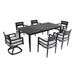 7 Pieces Modern Outdoor Patio Dining Set, Rectangular Table, 4 Chairs & 2 Swivel Rockers, Sunbrella Cushions - Ember Black 71.0"W x 35.5"D x 29.5"H