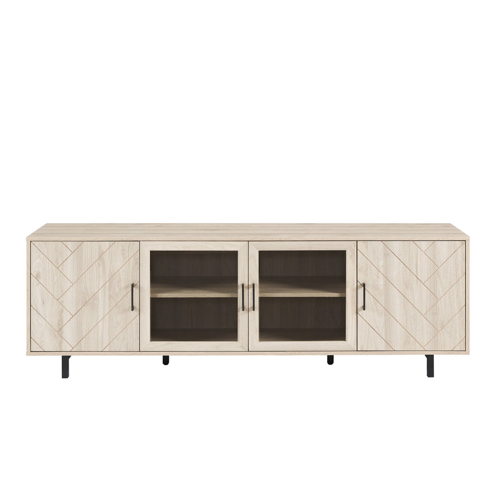 Modern Scandinavian 4 Door Herringbone 70" TV Stand For TVs Up To 80" - Birch 70.0"W x 15.75"D x 24.0"H - 100.0 lb