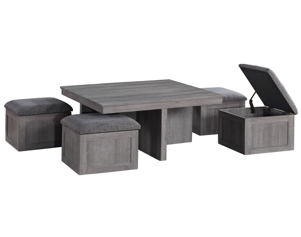 Moseberg - Oak Coffee Table With Storage Stools (Set of 5) - Gray 38.0"W x 38.0"D x 18.0"H - 126.0 lb