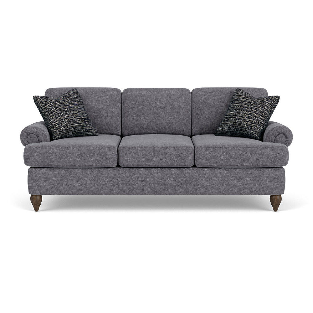 Cozy up with a loved one or claim it all for yourself with the Moxy sofa that lets you personalize details for the perfect look and feel. Formal panel roll arms sit on round turned legs that are available in a choice of three distinct wood finishes—Florentine, Valencia, or Urban Renewal—to complement any décor. The removable T-shaped seat cushions offer a distinctive look and added comfort. Sink into the ideal level of support with your choice of our luxury or plush cushions. Complete the look and showcase your lifestyle with hundreds of different fabric choices, including high-performance and sustainable textiles. Superior frame construction and our patented C-Flex Blue Steel Spring™ ensures your Moxy can be enjoyed for years to come.