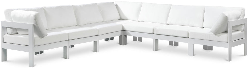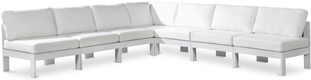 Nizuc - Outdoor Patio 7 Piece Modular Sectional With White Frame - White 150.0"W x 60.0"D x 34.0"H - 250.16 lb