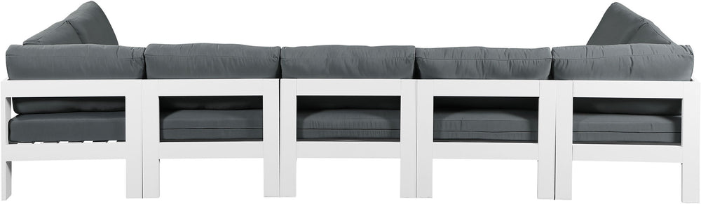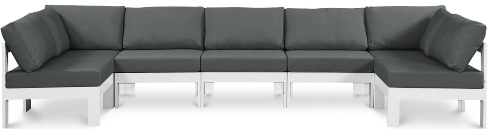 Nizuc - Outdoor Patio 7 Piece Modular Sectional With White Frame - Gray 150.0"W x 60.0"D x 34.0"H - 250.16 lb
