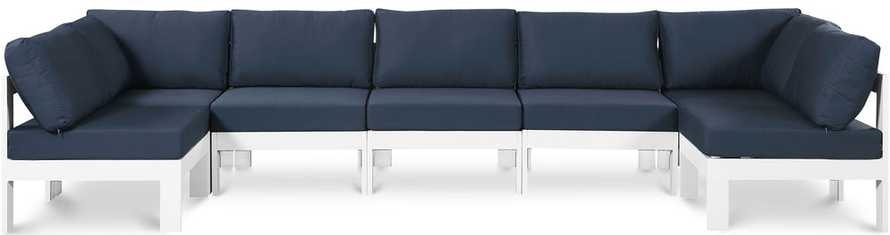 Nizuc - Outdoor Patio 7 Piece Modular Sectional With White Frame - Navy 150.0"W x 60.0"D x 34.0"H - 250.16 lb