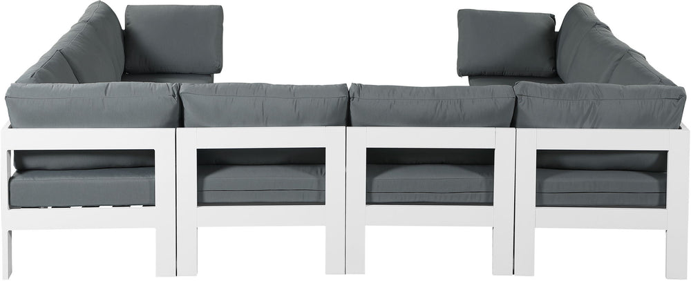 Nizuc - Outdoor Patio 8 Piece Modular U-Shaped Sectional With White Frame - Gray 120.0"W x 90.0"D x 34.0"H - 289.12 lb