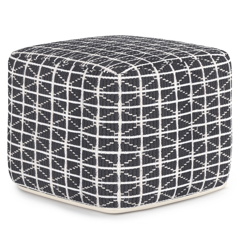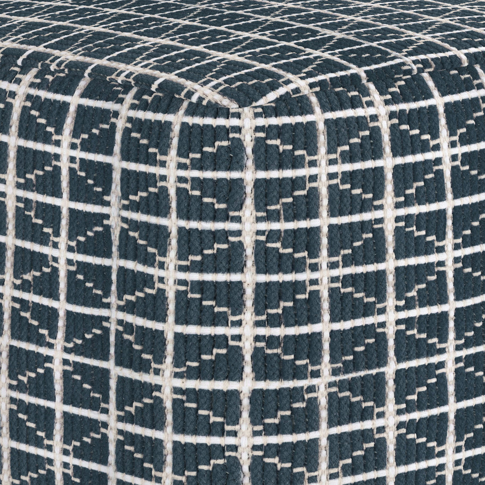 Noreen - Square Pouf - Dark Blue / White 18.0"W x 18.0"D x 14.0"H - 4.9 lb