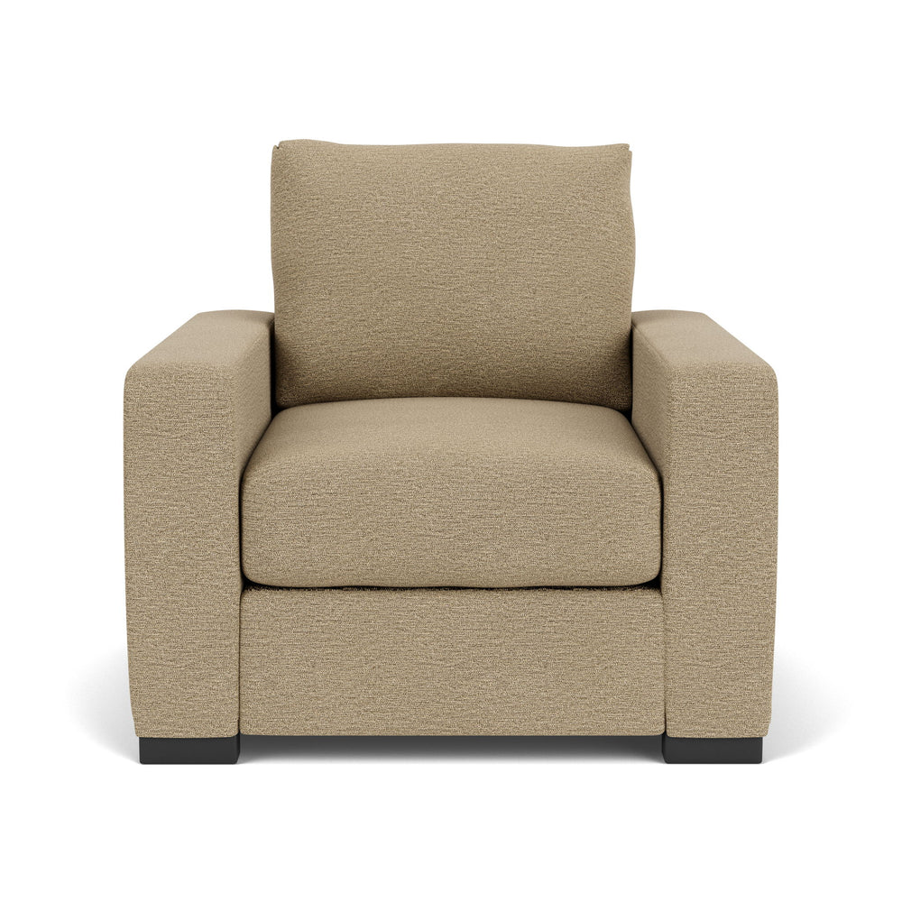 The art of lounging gets elevated with the Oliver chair, designed for those who cherish comfort without compromising on style. With wide track arms that cascade down onto black recessed legs and a clean-lined silhouette, Oliver seamlessly blends a timeless transitional aesthetic with a casual and inviting feel. Customizable in your choice of fabric, Oliver is bound to be your ideal relaxation zone.