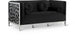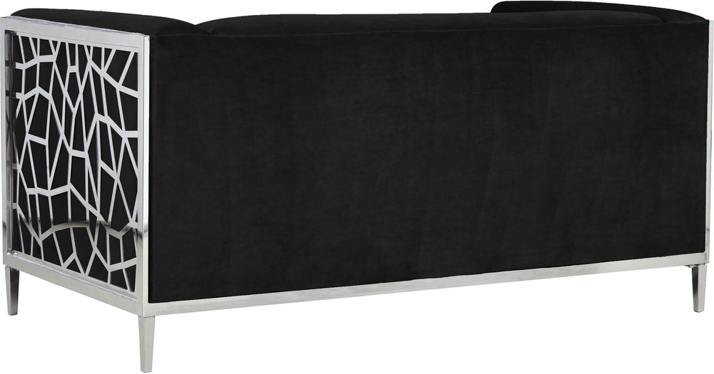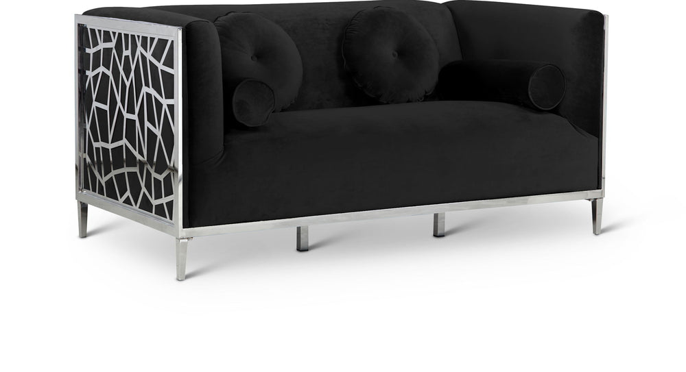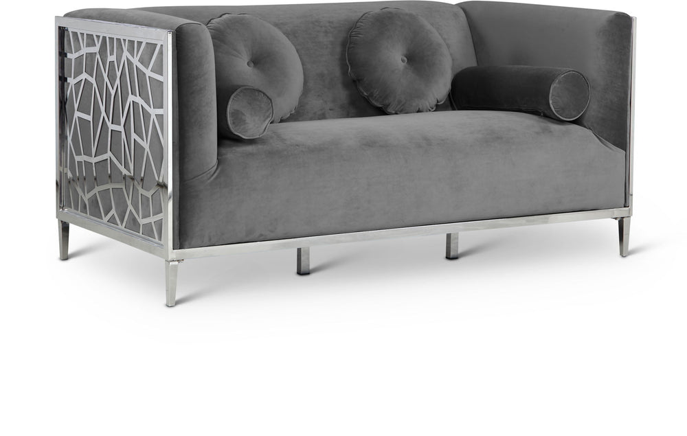 Catch the eyes of all who step foot in your home with this bold Opal velvet loveseat. Its stainless steel patterned design creates a contemporary flair against its plush, velvet upholstery, creating a home accent piece that is both comfy and stylish. Its roomy design offers ample room to kick back and relax after a long day, while its stocky shape adds a daring touch to your decor.