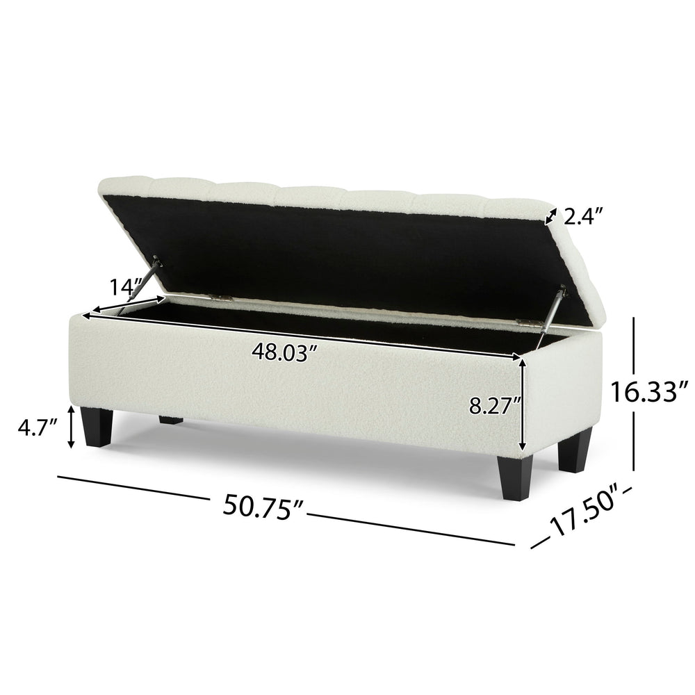 Ottoman Bench With Storage - White 50.75"W x 17.5"D x 16.33"H - 33.07 lb