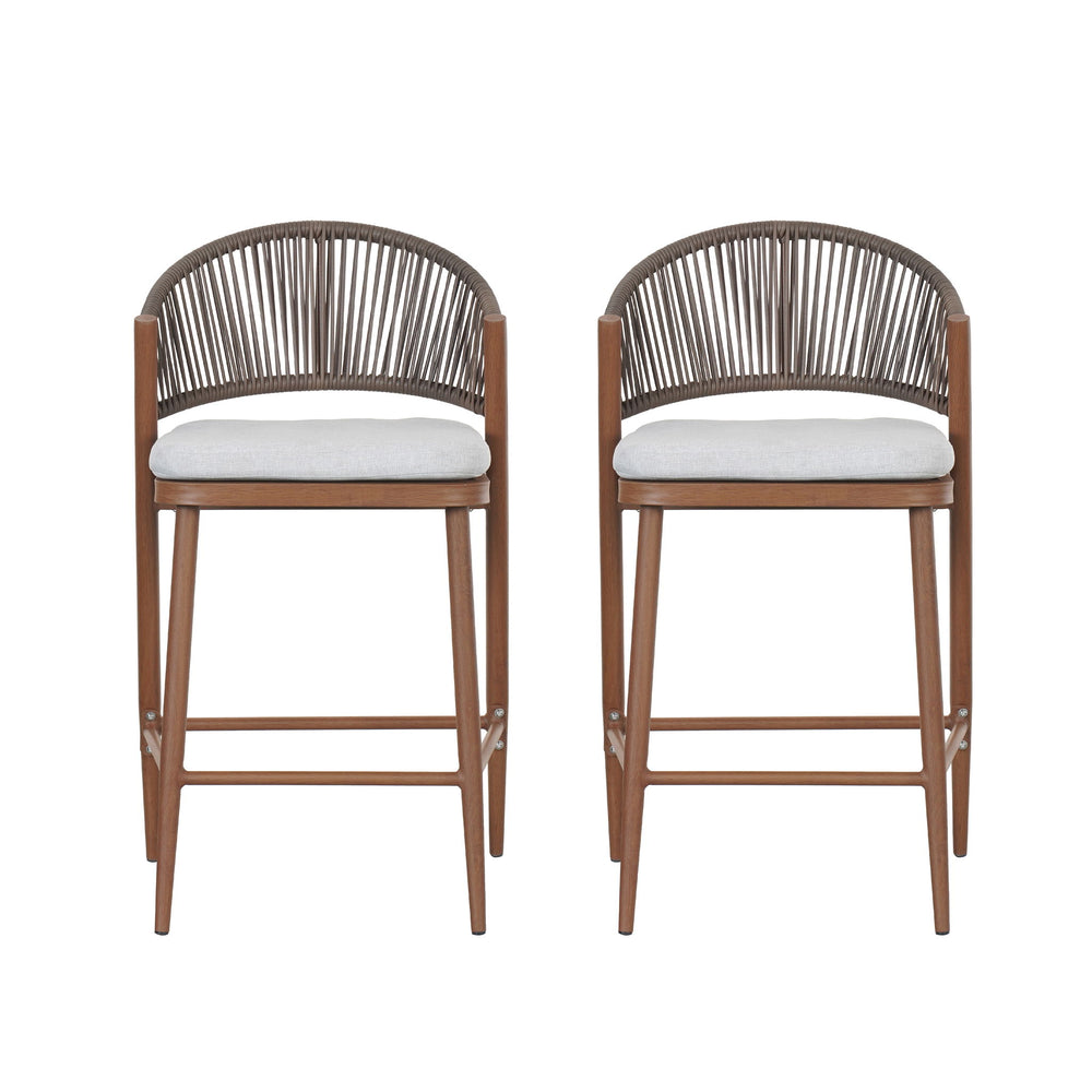 Outdoor Counter Height Aluminum Frame Counter Stools With Scallop Shaped Backrest & Water Resistant Cushions (Set of 2) - Teak 20.08"W x 19.88"D x 36.0"H - 9.04 lb