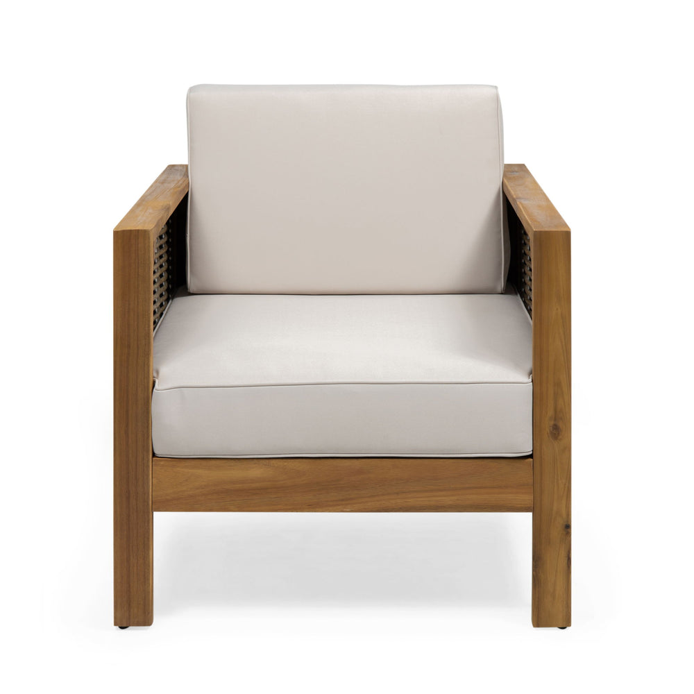 Outdoor Acacia Wood Club Chair With Wicker Accents - Teak / Mixed Brown / Beige 27.5"W x 30.25"D x 23.75"H - 41.89 lb