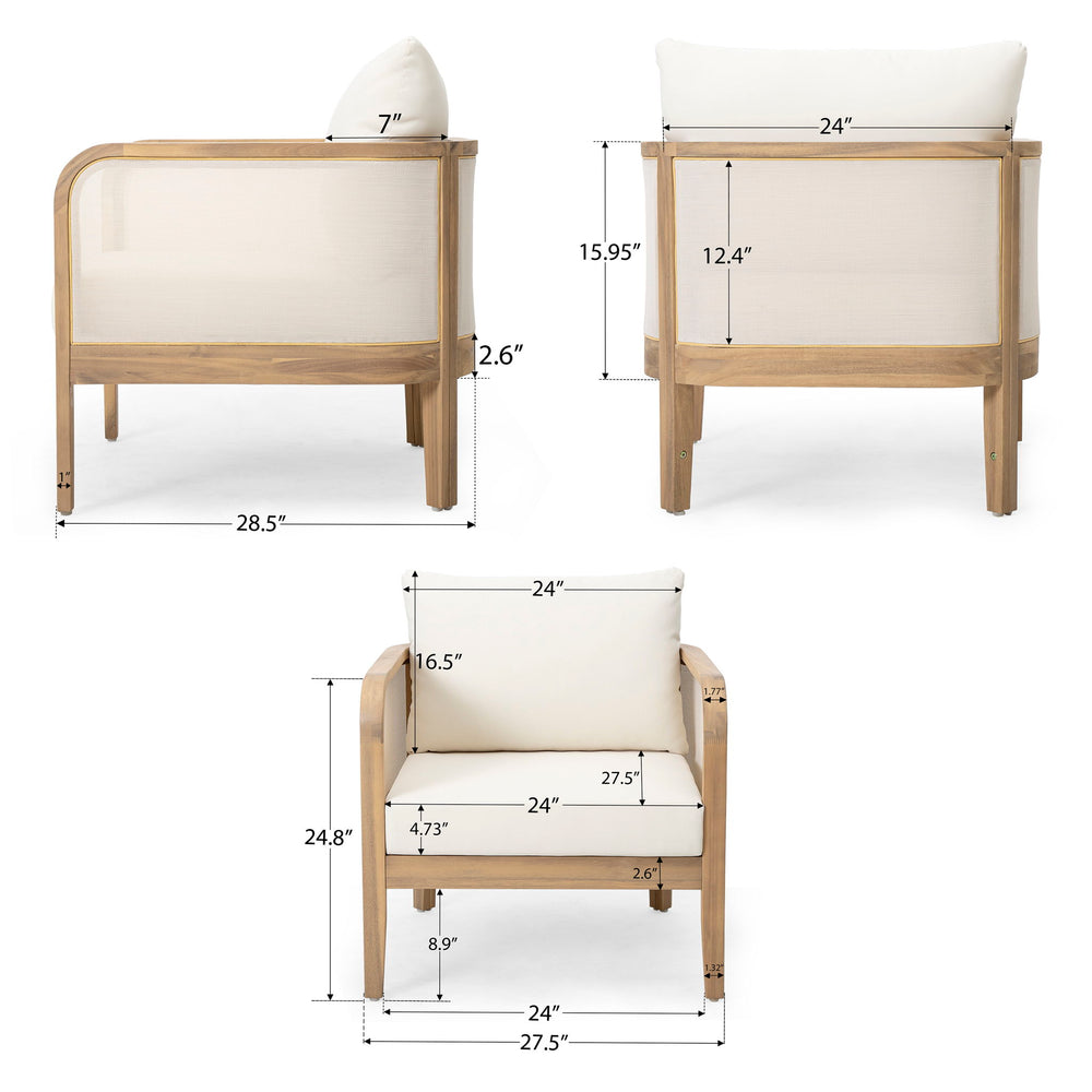 Outdoor Acacia Wood Patio Club Chair, Textilene Patio Furniture, Waterproof Thick Cushion Deep Seating For Porch, Garden, Backyard, Balcony, Weight Capacity 400Lbs, Light Teak - Beige 27.5"W x 28.5"D x 24.8"H - 29.8 lb
