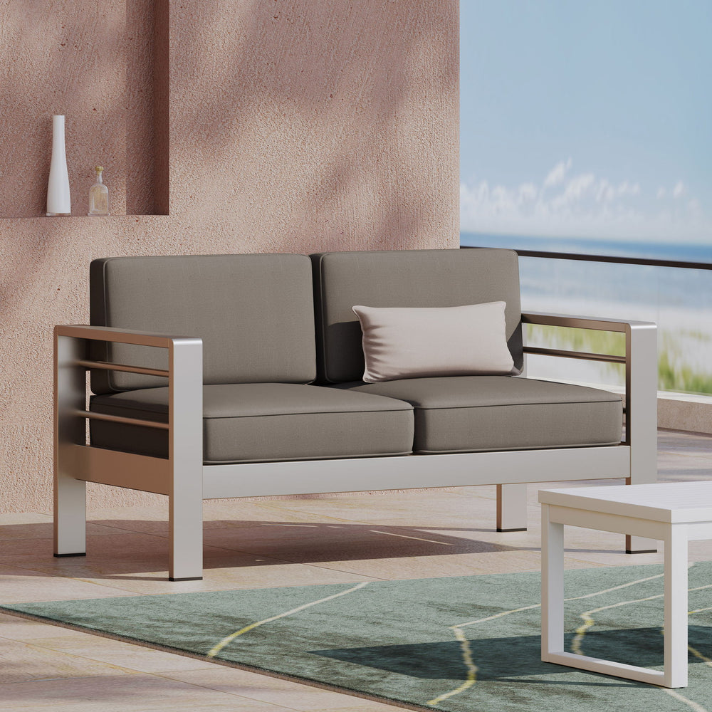 Outdoor Aluminum Loveseat With Cushion - Gray 56.75"W x 27.5"D x 24.5"H - 39.24 lb