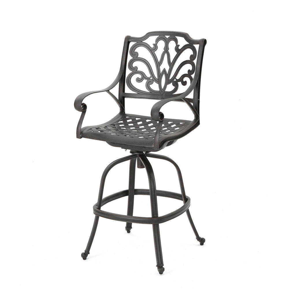 Outdoor Cast Aluminum Swivel Bar Stool With Scrolled Arms - Bronze