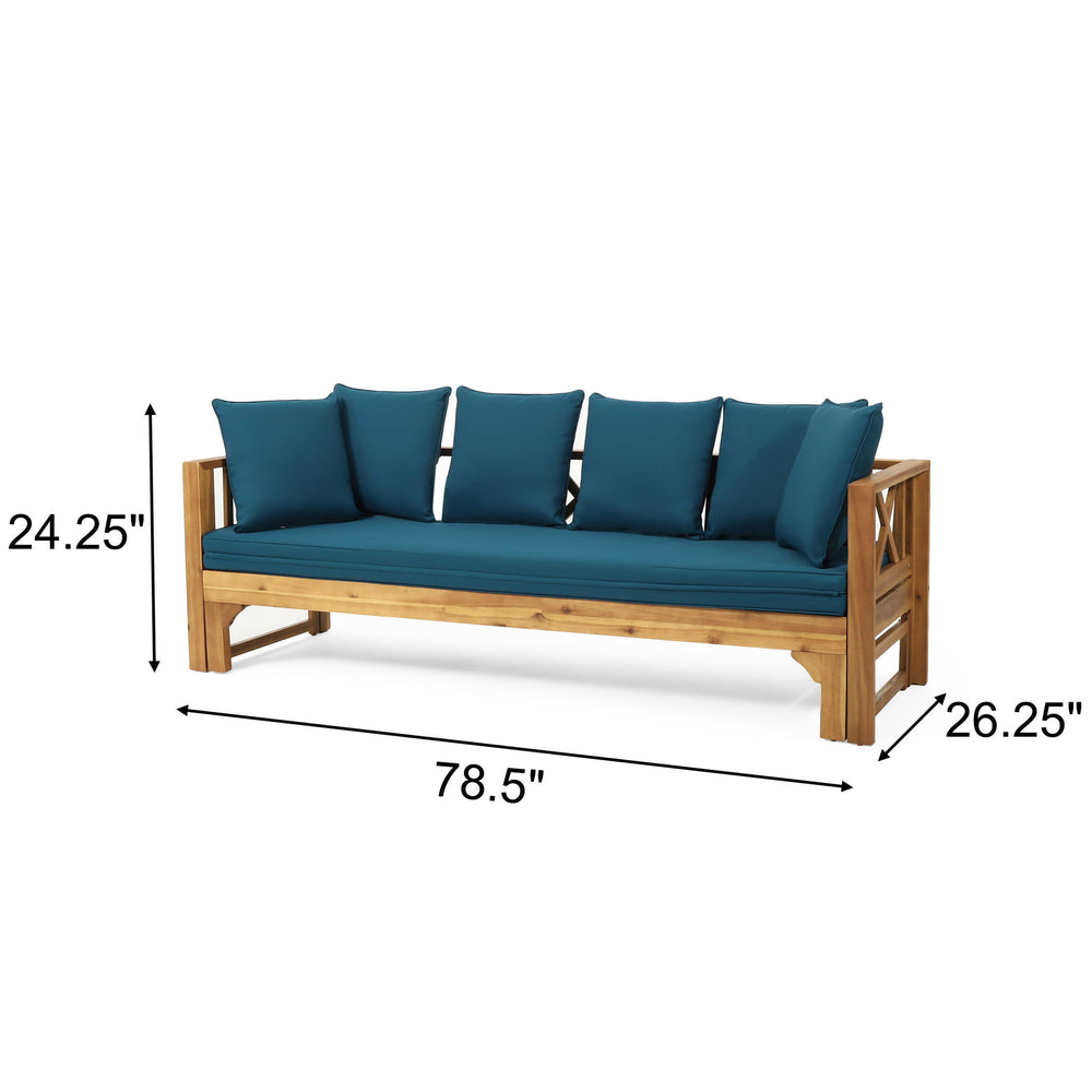 Durable Acacia Wood: Crafted from acacia wood, this daybed offers a sleek, exotic look and a solid, heavy frame that resists wear and tear while naturally withstanding outdoor elements.