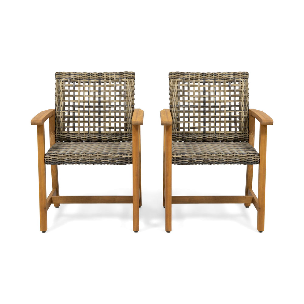 Classic and Cozy: These acacia wood dining chairs with PE rattan seating offer a classic and cozy look for any patio or backyard, enhancing your outdoor living space.
